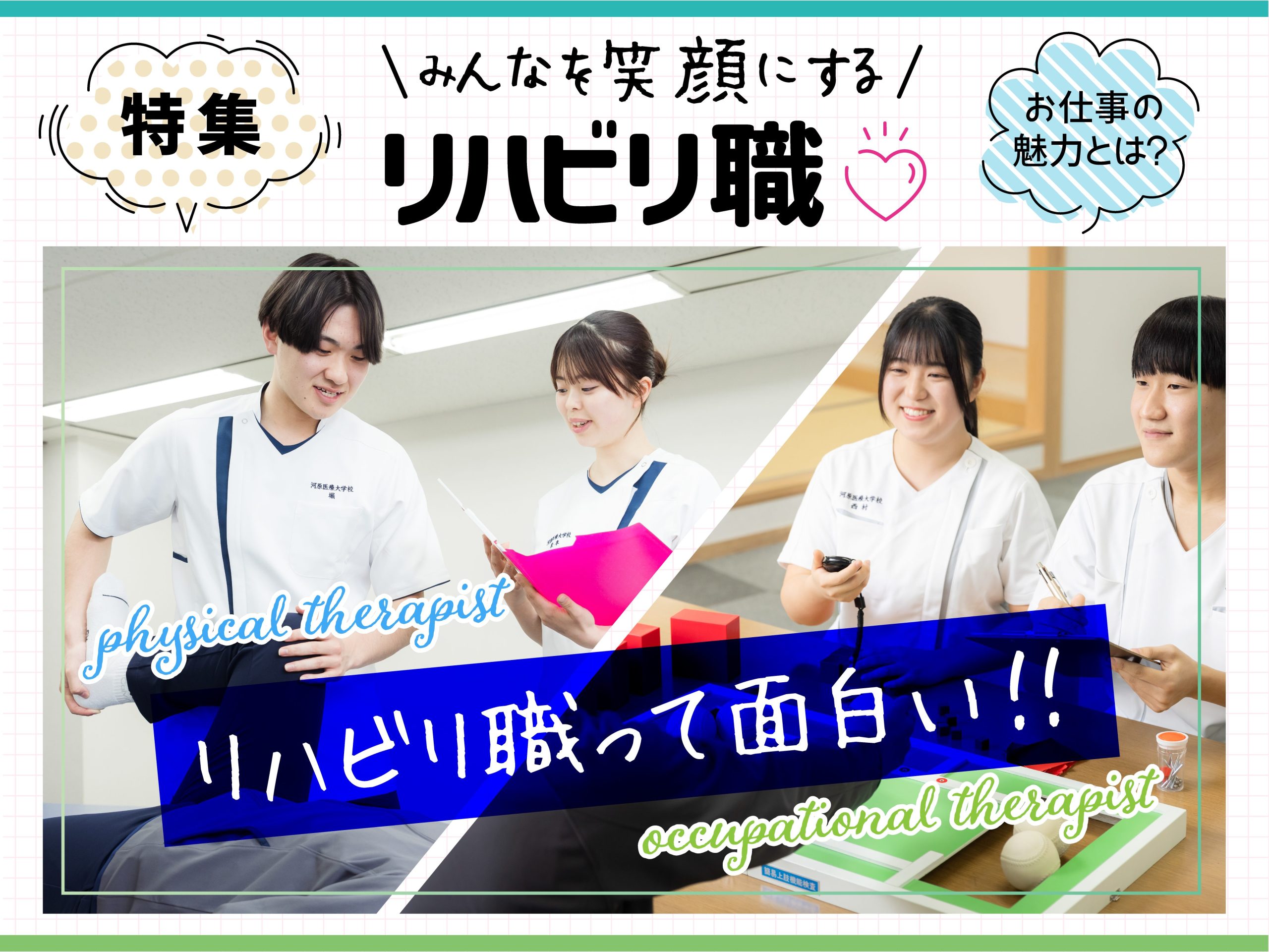 河原医療大学校で一緒に理学療法士・作業療法士を目指しましょう💛
