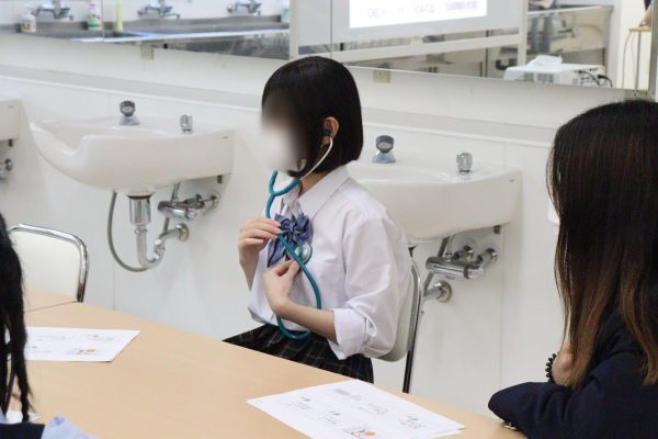 実際に聴診器を使ったり、脈を測ったりしました!👂