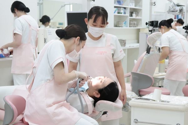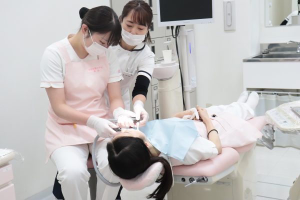 先日、歯科衛生学科2年生がバキューム実習を行っていました。