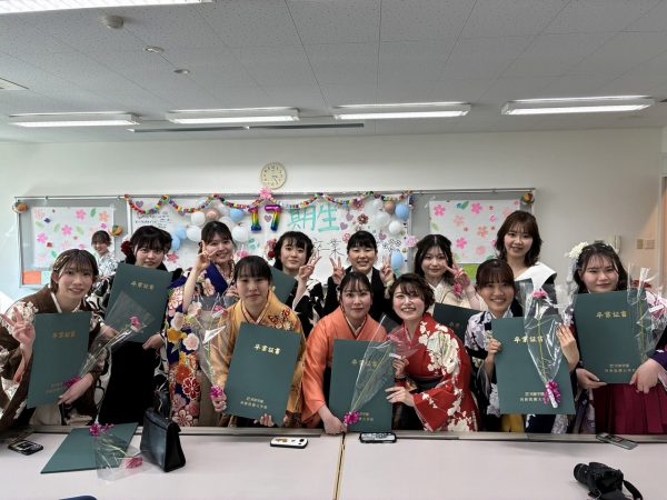 河原学園全体の卒業式が終わった後は学校に戻り、各学科に分かれて卒業証書授与式✨